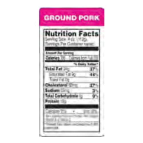 x 3" Ground Pork Nutrition Facts Nutritional Grinds Label
