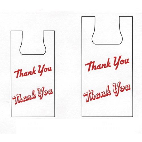 Lb 7.75 x 5 x 15" White "Thank You" T-Shirt Bag. Part of Ace Pak's general selection within poly bags & sheeting. Commercial-grade supply stocked for the packaging & shipping catalog.