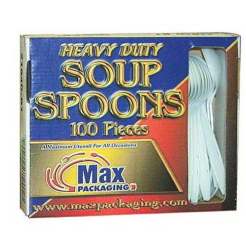 Boxed PS Soup Spoon, White, Heavy Duty, 1/CS/1000. Part of Ace Pak's general selection within food packaging. Commercial-grade supply stocked for the packaging & shipping catalog.