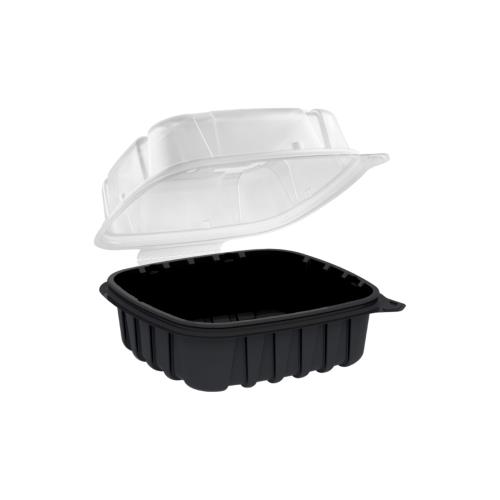 Culinary Basics® Polypropylene 1 Compartment Vented Hinged Container, Black/Clear, 6" x 6". Part of Ace Pak's general selection within food packaging. Commercial-grade supply stocked for the packaging & shipping catalog.