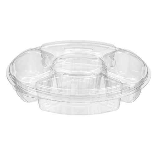 Essentials PET 5 Compartment Platter And Lid Combo Pack, Clear, 96 oz, 13" x 13" x 2.75"