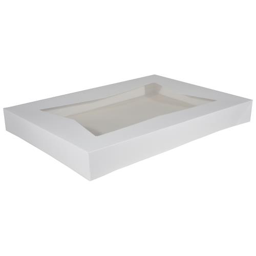 Full Sheet Auto Window Cake Box Top, White, 26.5" x 18.63" x 3". Part of Ace Pak's general selection within food packaging. Commercial-grade supply stocked for the packaging & shipping catalog.