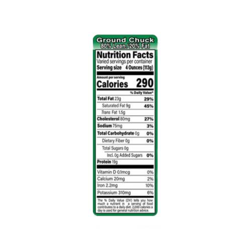 Ground Chuck 80% Lean / 20% Fat Label, Green/Black/UV, 1.5" x 4.13"
