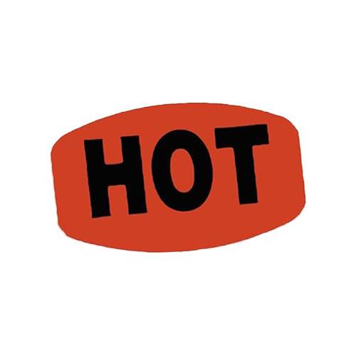 Oval Hot Label, Small , Red, 0.63" x 1.25"