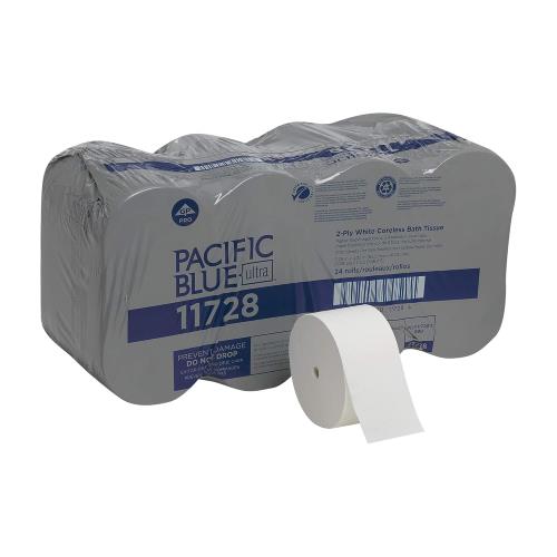 Paper Pacific Blue Ultra Toilet Paper, 2-Ply, 3.2" x 4.05". Part of Ace Pak's general selection within paper & dispensers. Commercial-grade supply stocked for the janitorial & sanitation catalog.