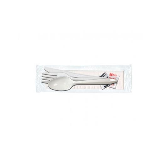 PP Medium Weight Knife, Fork, Spoon, Salt and Pepper, Napkin Cutlery Kit, White, 1/CS/250