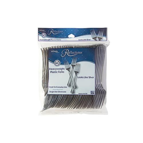 Reflections® PS Fork, Silver, Heavy Weight, 1/CS/320. Part of Ace Pak's general selection within food packaging. Commercial-grade supply stocked for the packaging & shipping catalog.