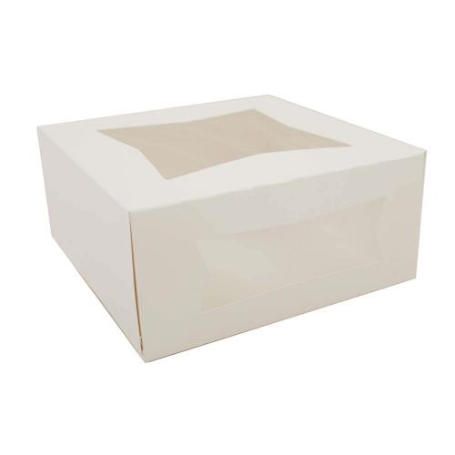 SBS Bakery Box with Auto Window, White, 9" x 9" x 4"