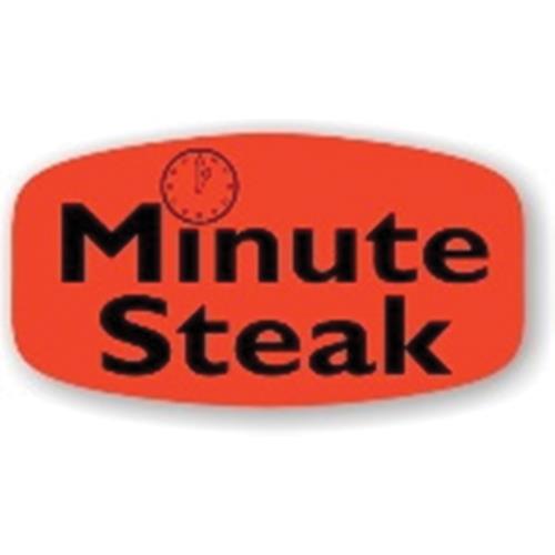 Short Oval Minute Steak Label, Red/Glo, 0.62 x 1.25"