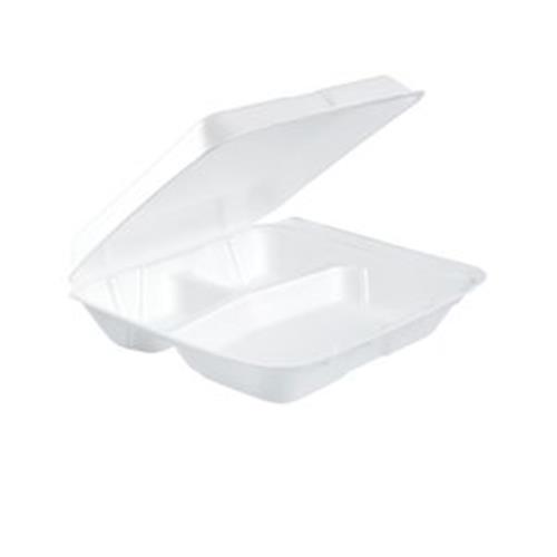 Small White Extruded Polystyrene 3-Compartment Container with Hinged Lid, 1/CS/200. Part of Ace Pak's general selection within food packaging. Commercial-grade supply stocked for the packaging & shipping catalog.