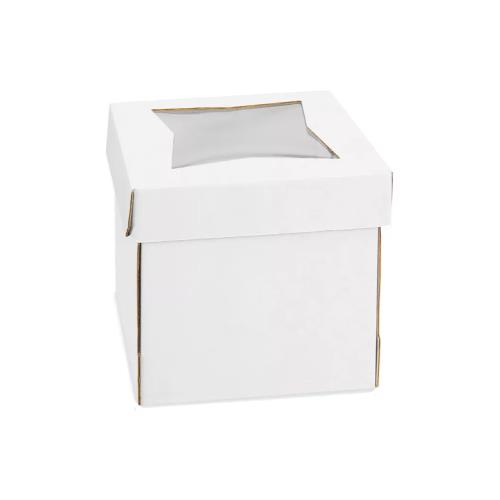 Tall Paper Cake Box With Window, White, 12" x 12"